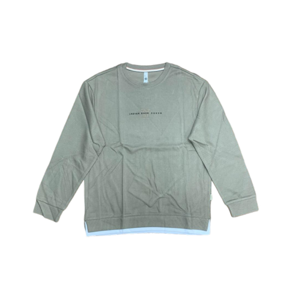Crew Neck Sweatshirt-ArmyGreen/Beige